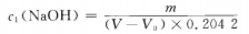 將苯二甲酸氫鉀置于1O5°C烘箱內(nèi)烘至恒量,稱取0.5 g,精確到0.1 mg,共稱3份,分別置于250mL錐形瓶中,加入100mL純水,使苯二甲酸氫鉀完全溶解,然后加入4滴酚猷指示劑,用氫氧化鈉溶液滴定至淡紅色30s內(nèi)不褪為止。滴定時應(yīng)不斷振搖,但滴定時間不宜太久,以免空氣中二氧化碳進入溶液而引起誤差。標定時需同時滴定一份空白溶液,并從滴定苯二甲酸氫鉀所用的氫氧化鈉溶液毫升數(shù)中減去此數(shù)值,按以下計算式計算出氫氧化鈉原液的準確濃度。